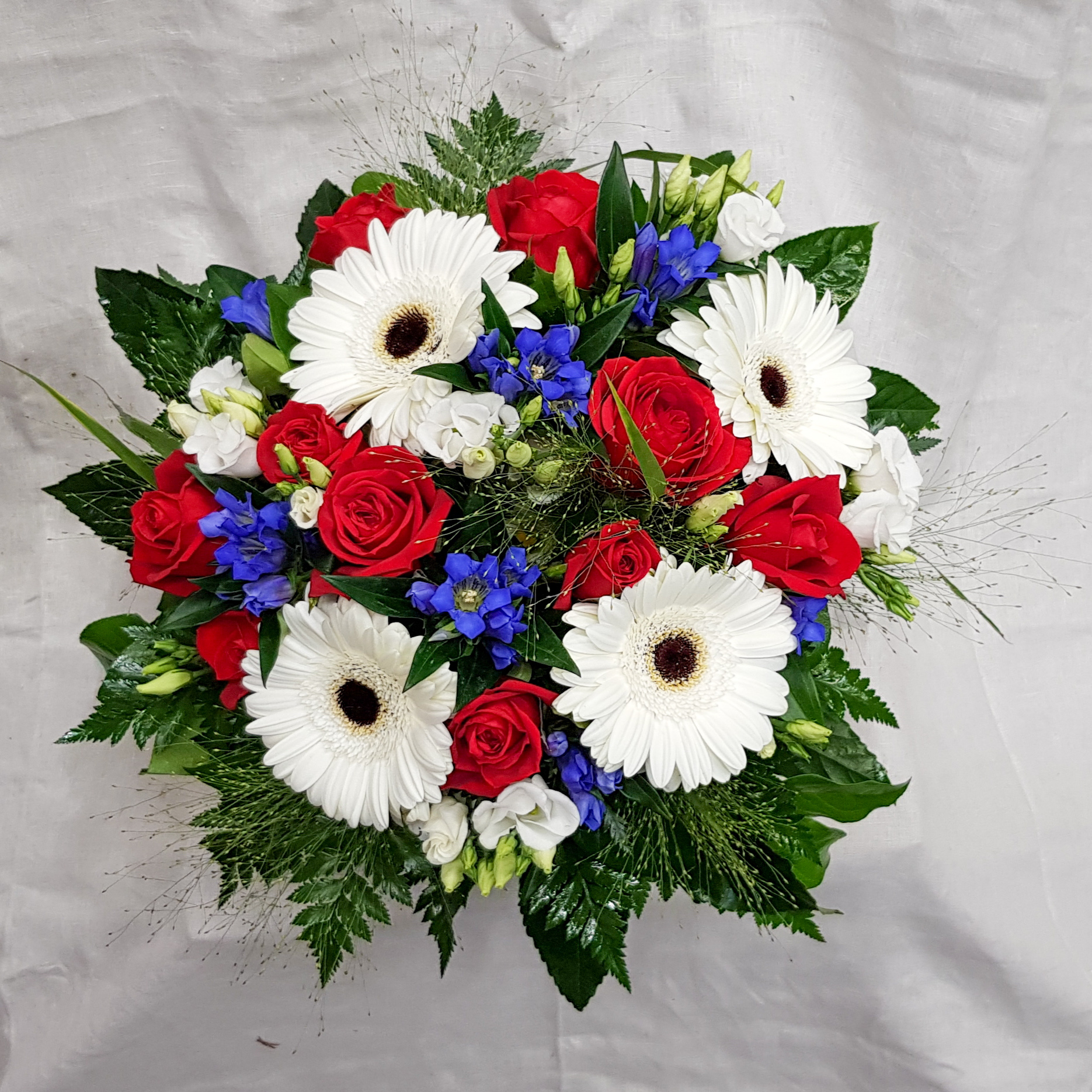 Kimpussa on ruusua, gerberaa, eustomaa sekä gentianaa