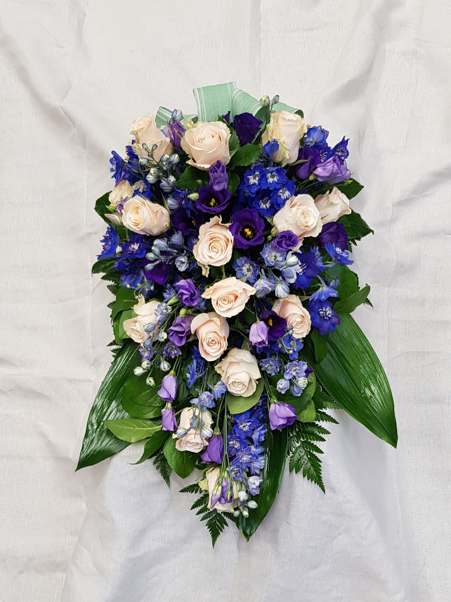 Suruvihkossa on ruusua, lilaa eustomaa sekä ritarinkannusta