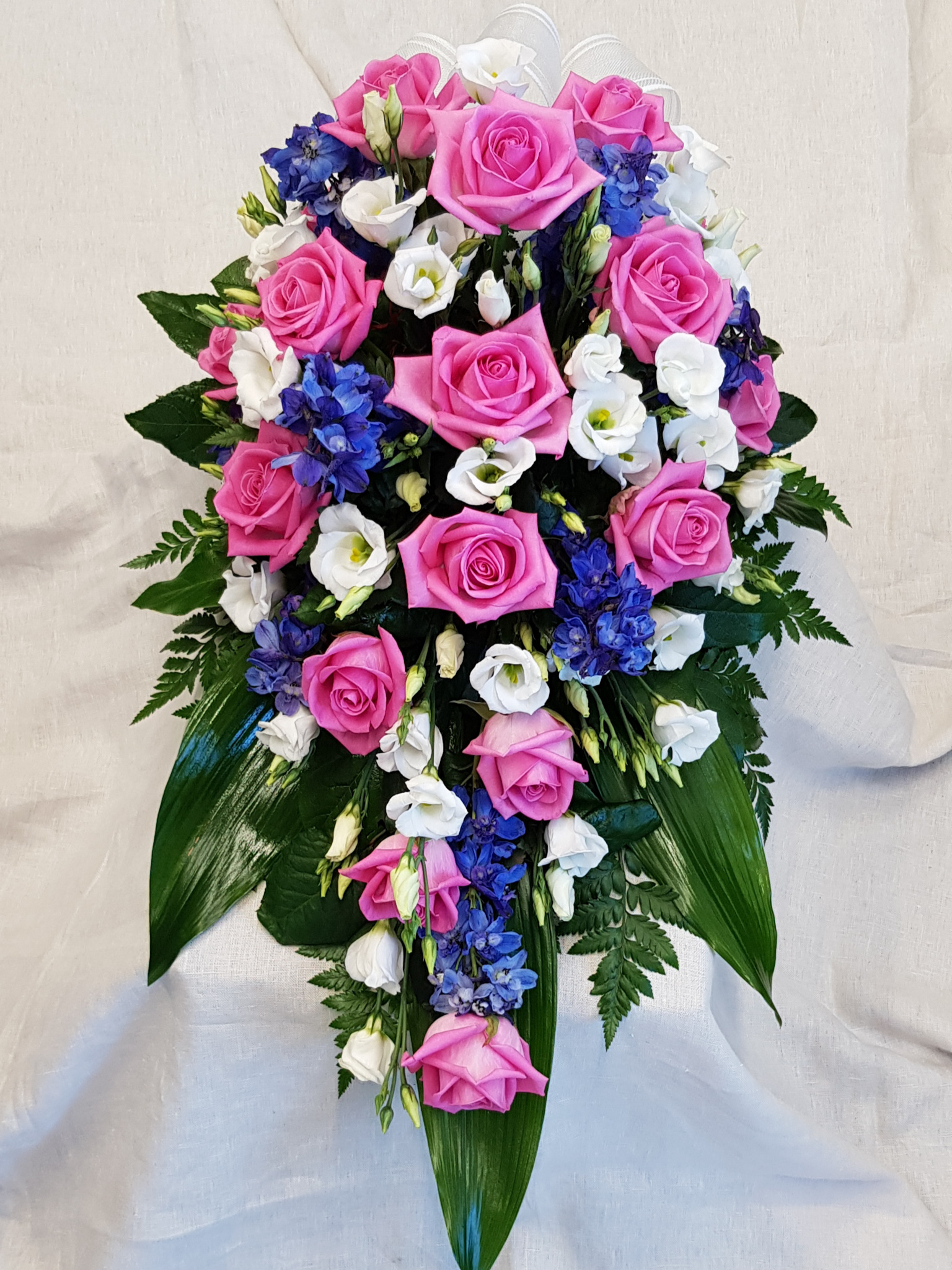 Suruvihkossa on ruusua, ritarinkannusta sekä valkoista eustomaa