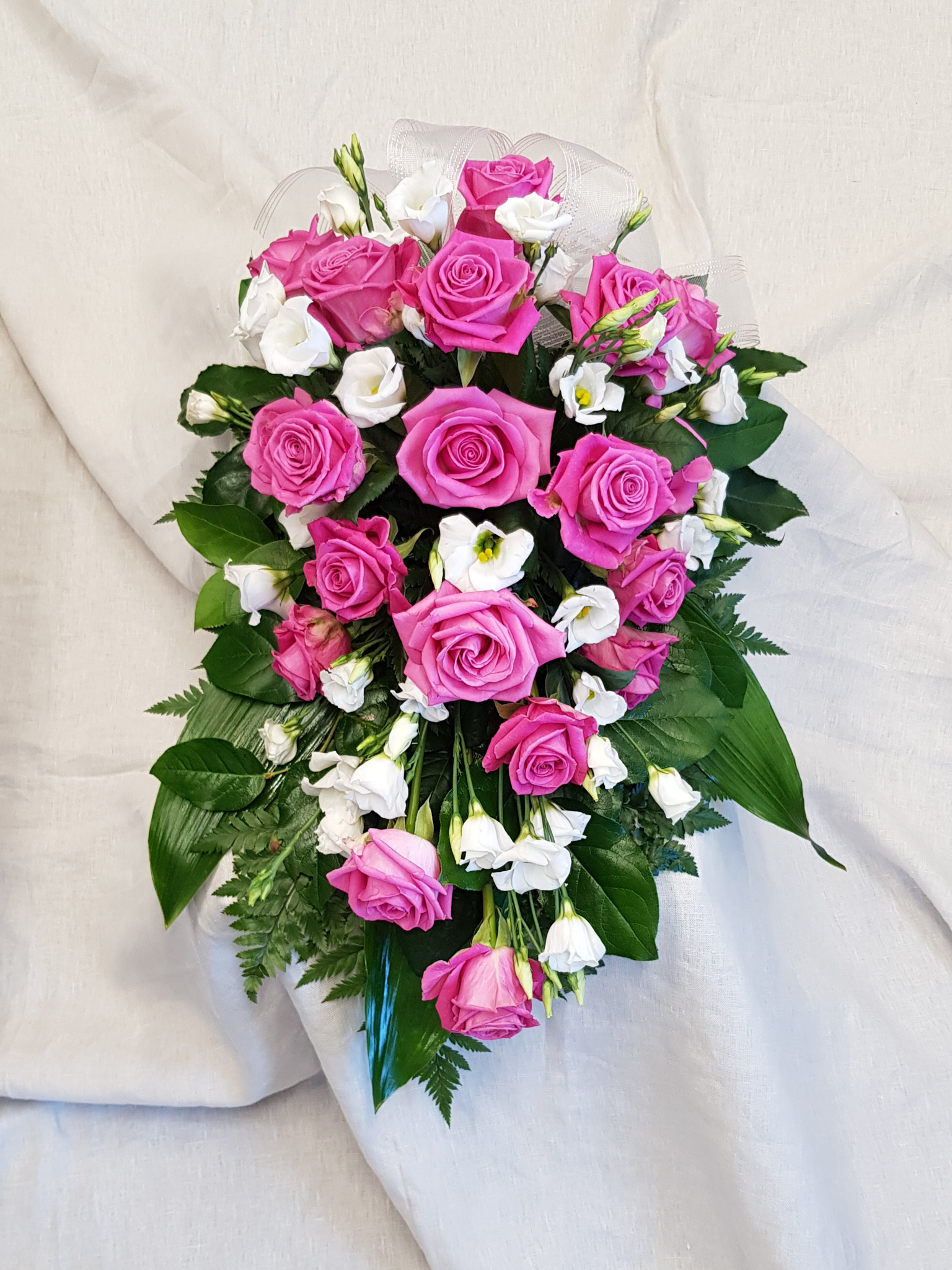 Suruvihkossa on ruusua ja valkoista eustomaa