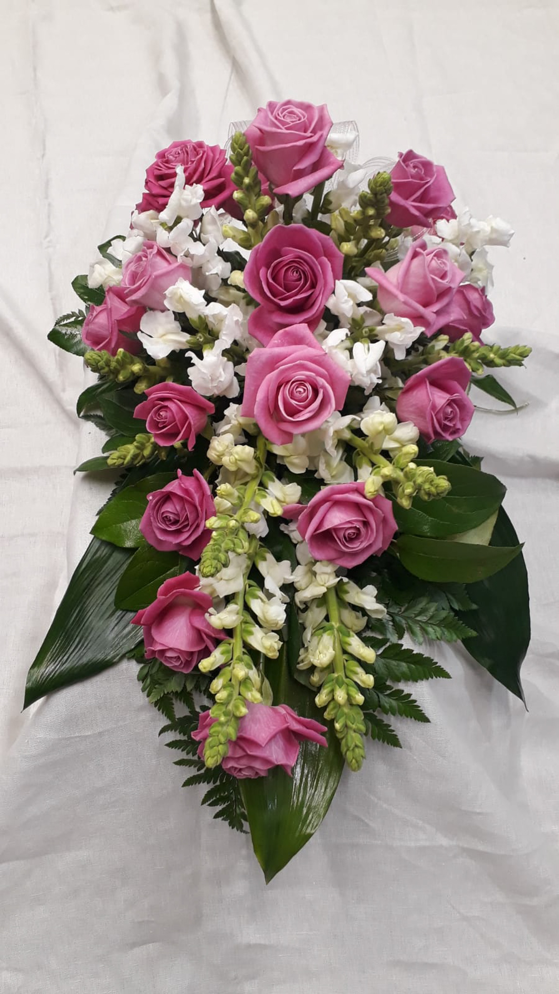 Suruvihkossa on ruusua ja valkoista leijonan kitaa