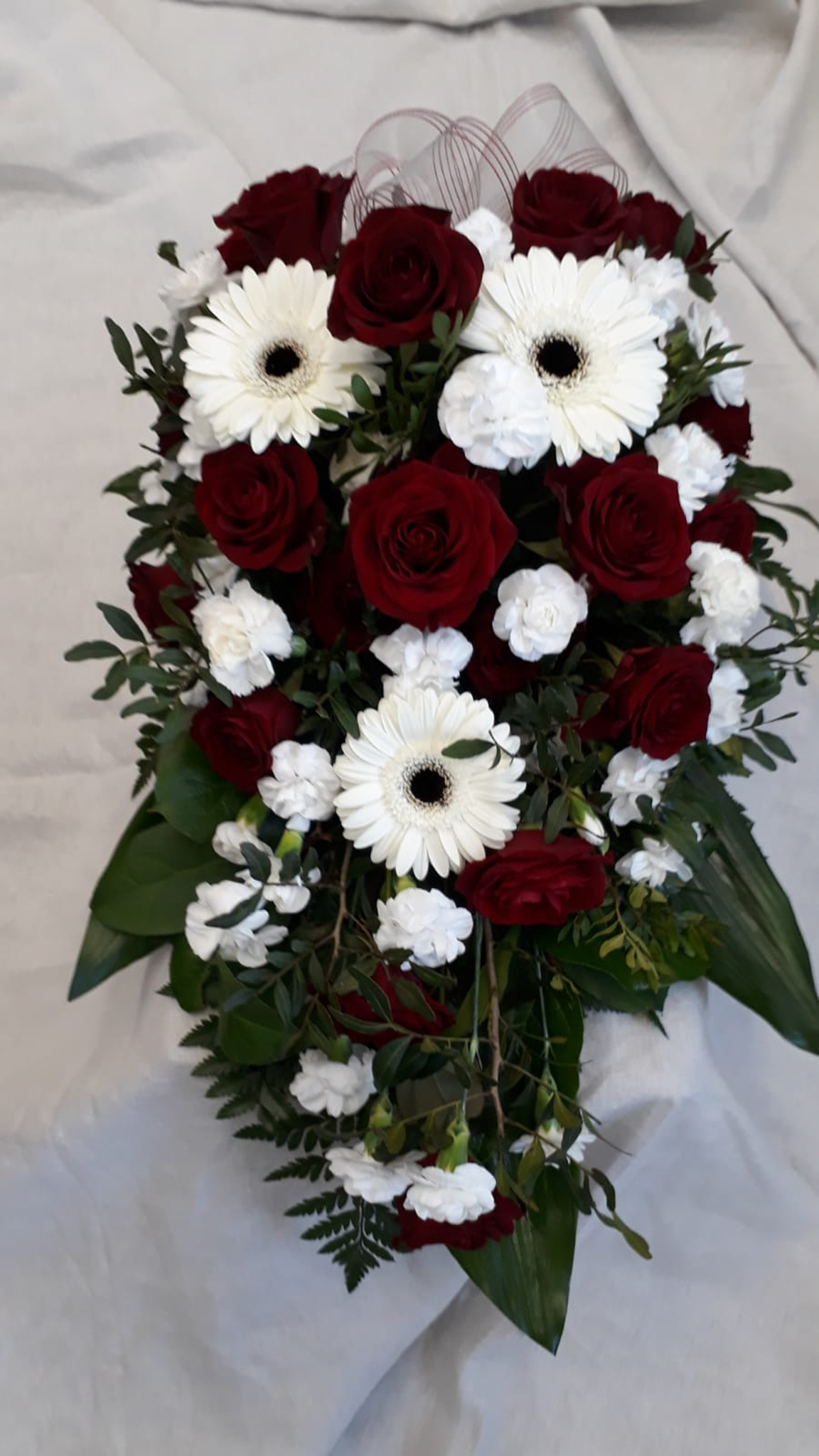 Suruvihkossa on ruusua, gerberaa sekä oksaneilikkaa